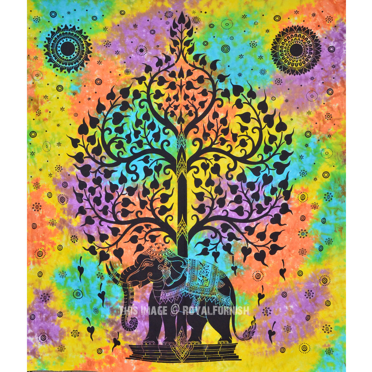 Hippie Elephant Tree Tapestry Wall Hanging, Tie Dye Sheet Bedding - RoyalFurnish.com